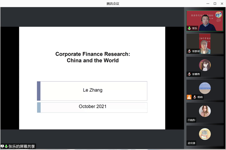 10月14日,校庆系列第二期海外学术论坛以线上会议的方式顺利召开。必赢线路检测中心校友、澳大利亚国立大学金融学副教授张乐受邀做客论坛,作了题为“Corporate Finance Research: China and the World”的学术报告。论坛由必赢线路检测中心金融学教授张群姿主持。