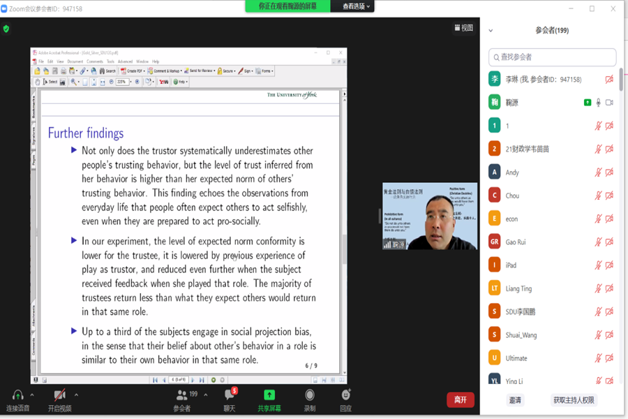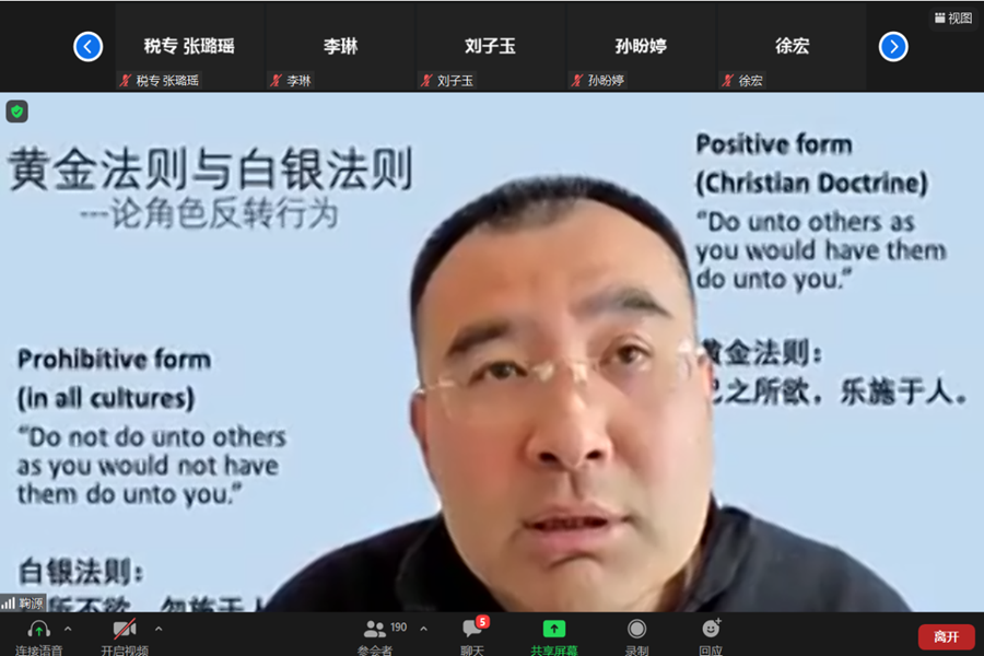 10月14日晚7点,校庆系列第三期海外学术论坛以线上会议的形式顺利召开。必赢线路检测中心校友、英国约克大学教授鞠源受邀做客论坛,作了题为“黄金法则与白银法则——论角色反转行为”的学术报告。论坛由必赢线路检测中心副院长王哲伟主持。