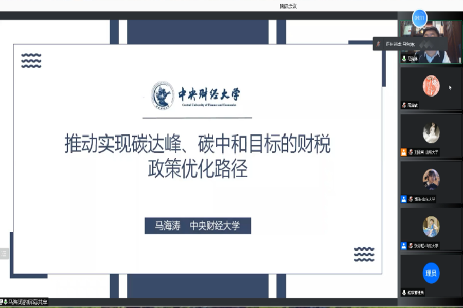 马海涛教授做了“推动实现碳达峰、碳中和目标的财税政策优化路径”的报告。报告认为实现碳达峰、碳中和这一经济社会系统性变革需要财税政策的有力的支持和保障,提出应当加强顶层设计、完善税收制度、优化财政支出来助力节能减碳。