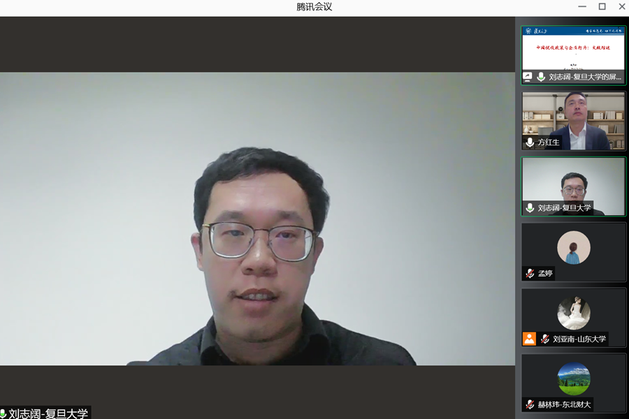 刘志阔副教授做了题为“税收政策与企业行为”的报告。报告梳理了中国企业税收的研究现状,并从企业税收的描述性工作、数据相关的基础性工作、理论框架和实证评估相结合的方法、国际税收等方面提出了未来可能的进展空间。