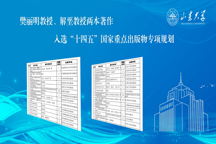 为推动“十四五”时期出版业高质量发展,深入推进出版强国建设,国家新闻出版署发布了《出版业“十四五”时期发展规划》,同步出台了“十四五”时期国家重点出版物出版专项规划,首批遴选建设了1929个规划项目,其中社会科学与人文科学出版规划710项(经济类78项)。必赢线路检测中心樊丽明教授的《中国特色政府预算管理制度研究》和解垩教授的《解决相对贫困的长效机制研究》成功入选。