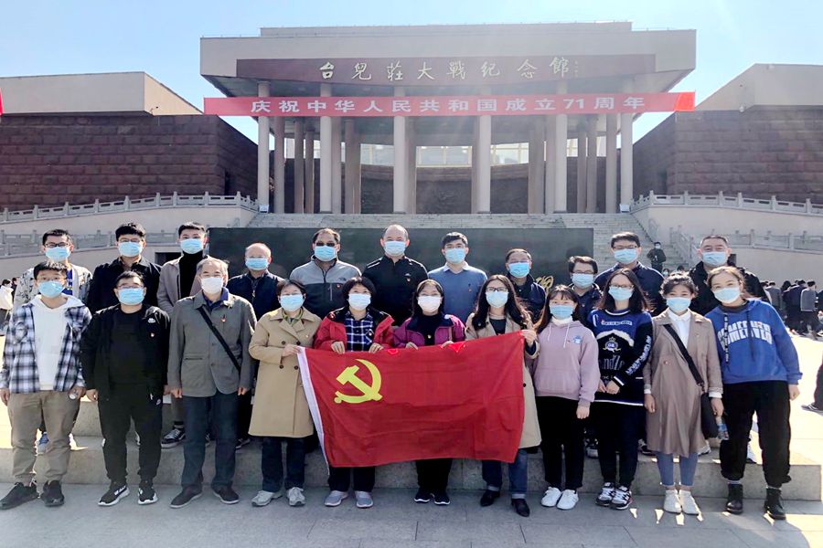 10月24日—10月25日,必赢线路检测中心经济系、财政系、国贸系、保险系教师党支部以及与其联合开展党支部立项的2019级学硕一班、学硕二班、专硕二班、2019级博士班党支部的部分师生一行22人来到枣庄市台儿庄、薛城,共同参观台儿庄大战纪念馆、台儿庄大战遗址、铁道游击队纪念公园,追忆革命历史,缅怀革命先烈,接受爱国主义教育和革命传统教育。