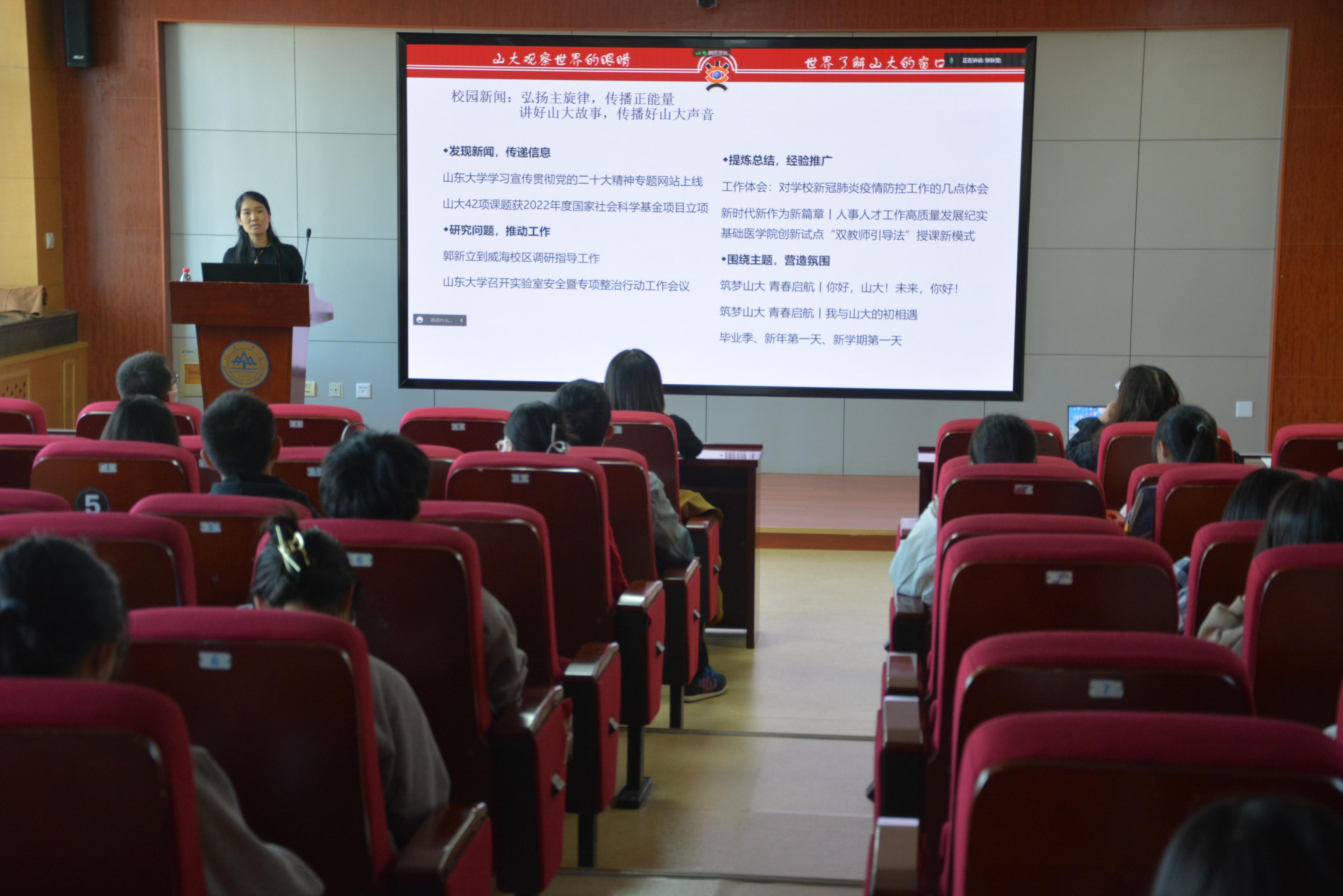 培训会以线上线下相结合的方式进行,各师生党支部、团支部宣传委员,学院研究生、本科生学术新闻中心同学,学院各机关科室负责人等参加培训会。