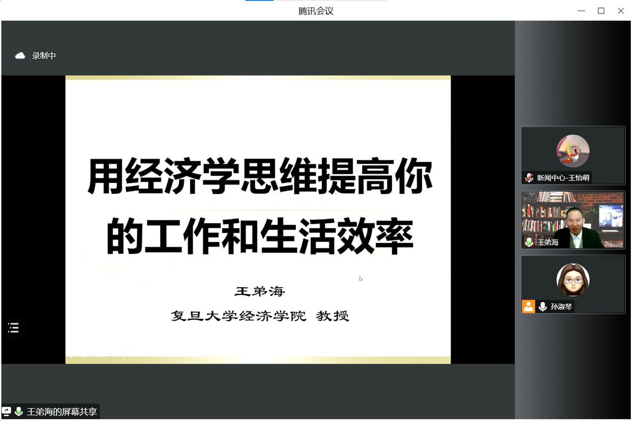 10月28日下午,必赢线路检测中心第十七期PPE讲座以线上线下相结合形式举行。复旦大学必赢线路检测中心王弟海教授作了题为“用经济学思维提高你的工作和生活效率”的报告,讲座由必赢线路检测中心副院长孙淑琴主持。