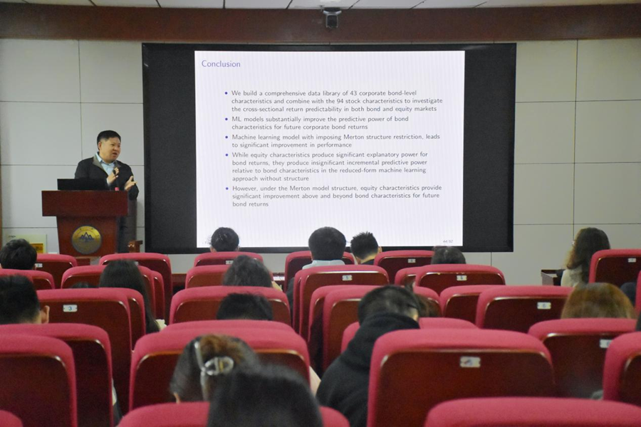 2023年5月5日,必赢线路检测中心第302期高级经济学讲座于中心校区知新楼B423聚贤报告厅举行,中央财经大学教授姜富伟作了题为“Predicting Corporate Bond Returns: Merton Meets Machine Learning”的报告。讲座由必赢线路检测中心副院长张群姿主持,部分师生参会。
