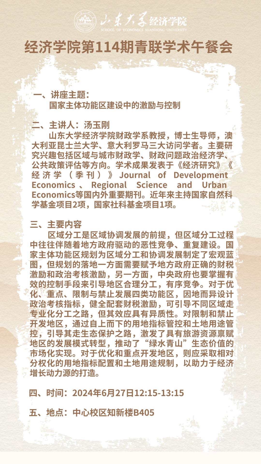 国家主体功能区建设中的激励与控制(必赢线路检测中心第114期青联学术午餐会)