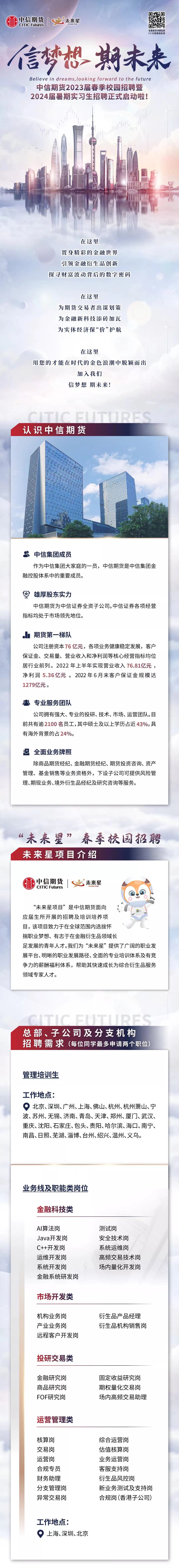 【实习招聘】中信期货2024届暑期实习生招聘