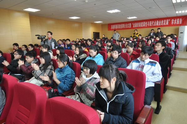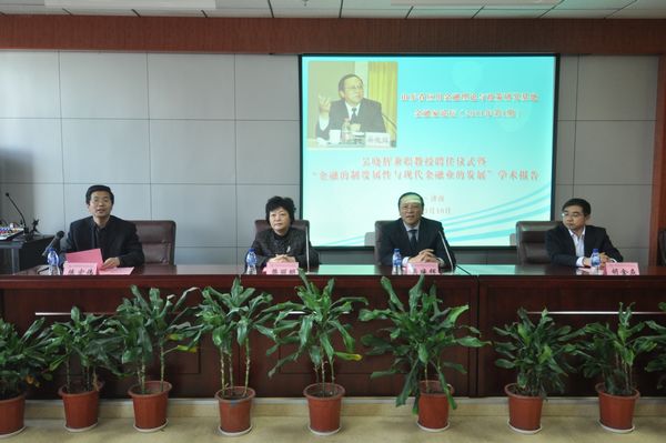 仪式后,吴晓辉行长做客2011年第1期“山东省应用金融理论与政策研究基地金融家论坛”,发表了题为“金融的制度属性与现代金融业的发展”的学术报告。报告中,吴晓辉行长从金融的概念、金融业的历史发展、金融企业与金融市场、金融业的监管、21世纪现代金融业发展趋势和现代金融研究的发展趋势六个方面做了详细阐述。他首先从金融的概念与金融业的历史发展着手,解释了金融的概念分类及金融业的飞速发展状况,重点分析了目前金融企业与金融市场的发展,金融企业可以从业务、收入、考评、风险四个角度进行分类,由此构成的金融市场具有融资功能、投资功能、价格发现、风险对冲四个主要功能。而政府对于金融业的监管主要通过拨备来消化预期损失、通过资本缓释非预期损失冲击 、宏观调控三方面。他提到21世纪现代金融以基于脱媒基础上的银行功能重构、基于环境变化基础上需求创造供给、基于信息技术基础上的经营模式革命为主要趋势发展,关于现代金融发展研究的方法也顺应金融发展趋势,从个体孤立演变到整体联系(行业、产业链、上下游,相关性),最终以立体发展(加入了时间因素)的方法为主。学术报告由必赢线路检测中心常务副院长胡金焱教授主持,并对学术报告做了生动诠释和精彩点评。